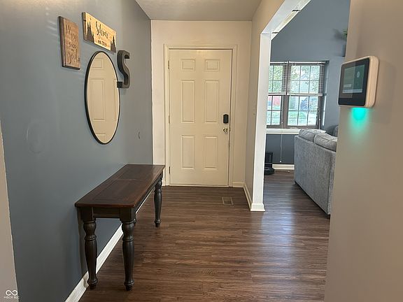 Stylish and cozy ranch with matching LVP flooring throughout . Great room/ dining room with its cathedral ceiling gives a feeling of space and open design. There is shelving built for holding books or your collectibles and it will stay. Dining room features tall window for extra daylight inside. Pass through window from kitchen to dining area provides easy moving of meals you serve your family and friends. There is room in the kitchen for a breakfast table and all the appliances are less than 3 years old. The Sliding glass door accesses the patio and private tree lined back yard. Primary bedroom has generous size walk in closet, vanity/sink area and private tub/shower room. This 3 bedroom 2 bath home is clean and has lots of fresh paint and new decor. New dishwasher, primary closet organizer system,insulation in attic.