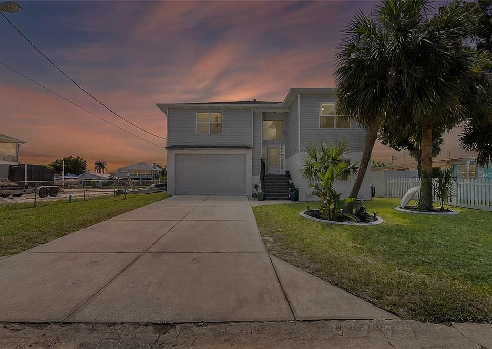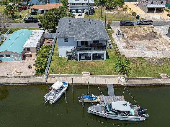 BACK ON THE MARKET!!! With lots of upgrades including new floors on the first level, new paint throughout, and a new seawall cap. ARE YOU ELIGIBLE FOR A VA LOAN? REACH OUT TO THE LISTING AGENT FOR INFORMATION ON ASSUMING THE OWNERS VA LOAN AT A LOW INTEREST RATE AND VERY LITTLE DOWN! Discover coastal living at its finest in this elevated waterfront home offering direct Gulf access, a private floating dock, and an open permit for a future boat lift with pilings already in place. This thoughtfully designed 3-bedroom, 3-bath home features a desirable split floor plan on the main (second) level, plus an additional bathroom and fully equipped bonus suite on the ground level. Step inside the bright and airy main level, where tall ceilings, fresh paint, and new vinyl flooring set the stage for modern waterfront living. The open-concept kitchen, dining, and living area flows seamlessly to a covered rear deck overlooking the water — perfect for entertaining or relaxing with a view. The kitchen boasts stainless steel appliances, a gas cooktop, quartz countertops, eat-in island, pantry, and of course, breathtaking water views. The spacious primary suite features a recently updated bathroom with dual vanities, a walk-in shower, and a luxurious garden tub. Laundry hookups are conveniently located on both levels. The far end of the home has two bedrooms that share a bathroom. Downstairs, enjoy the versatility of a bonus room with a full bath, laundry area, and its own entrance. The garage side of the first level features a 12-ft tall door with parking for up to 4 vehicles in the tandem bays that are also deep enough to park a boat trailer. The ground level is finished with weather-resistant PVC and block walls for durability and peace of mind. Outside, the oversized fenced yard has ample room to build the pool of your dreams and the side yard has plenty of space to park your RV or boat. Plus, the floating dock and pre-installed pilings make boating a breeze—skip the wait with an already open, transferable permit for your future lift. Additional updated include a new AC in 2017 and new roof in 2022. With all of the wind mitigation upgrades on this property the home owners insurance is only $2474 and transferable flood insurance is $2141. Seller has estimates for a new pool in the backyard at $55k and can be installed within 4 months. Hernando Beach is a vibrant waterfront community that offers the best of coastal living—boating, kayaking, paddleboarding, fishing, and more. Just minutes from the world-famous Weeki Wachee Springs, residents also enjoy close proximity to shopping, dining, hospitals, and top-rated schools. The community is golf cart friendly and allows short-term rentals with no HOA, no deed restrictions, making it perfect for full-time residents, part-time snowbirds, or investors. The Suncoast Parkway offers easy commuting to Tampa, Brooksville, and beyond.