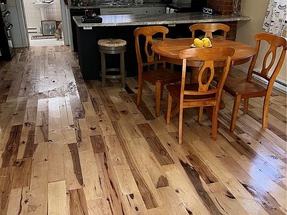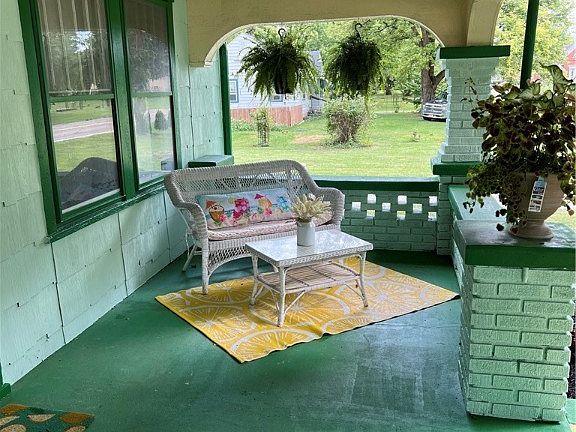 Newley remodeled home featuring real hickory floors in kitchen and dining rooms. Kitchen has new countertops sink and breakfast bar. All new paint throughout. New carpeting, upstairs bathroom has marble floor and surround and new vanity.There is a whole house fan and 4 window air conditioners. Outside features all new paint including painting the metal roof. Front porch has new dimensional roof and painted .Back porch looks out to fire pit and your new 2 1/2 car garage with extra pad for boat or your fun toys. Home is freshly landscaped with a new gravel driveway