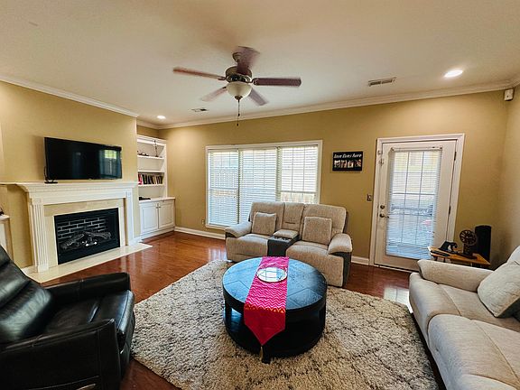 Fireplace with book shelvesLarge walk-in closetUpdated kitchenSpacious cabinetsSlate tile back splashHardwood flooring