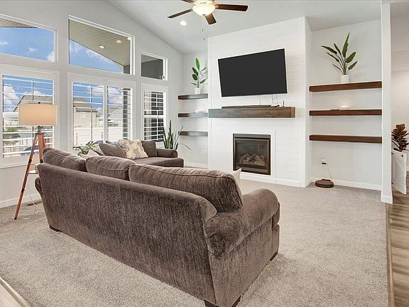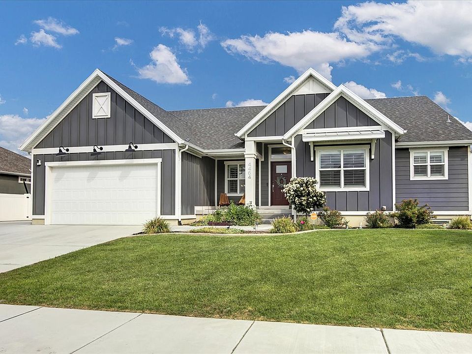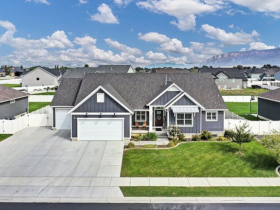 This home will satisfy even the most particular buyer with its high caliber design finishes and superior quality. Inside this sprawling rambler you'll find professionally designed interiors with luxury finishes like quartz countertops, a gourmet kitchen with a butlers pantry behind a hidden door, quartz counters, gas range with designer vent hood, floor to ceiling living room picture windows, vaulted ceilings, an oversized primary bathroom with luxury tiled shower, and much more. The fully finished basement has a great room with a kitchenette that could be converted to a second kitchen. The recently completed home construction combined with low-E windows, energy efficient HVAC, high performance insulation, and Energy Star appliances make this home energy efficient and cost effective to maintain. Low maintenance landscaping creates superior curb appeal. The over 1/3 acre fully fenced yard gives ultimate privacy. RV parking and the oversized four car garage offer plenty of space for your vehicles and toys. The garage floor was recently professionally epoxied and ample overhead storage installed. In the backyard you'll find a basketball court and a nicely designed chicken coop (complete with the chickens if the buyer wants them!) The coop area can easily be converted to a dog run, a fenced garden area, or a place to install a playground. 'Green Farms' has easy access to shopping and to I-15, an abundance of amenities, and a very low HOA fee making it an extremely desirable lifestyle community in which to purchase your 'forever home.'