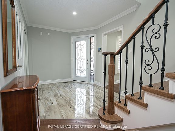 Beautiful 4-Bedroom Detached Home in a Quiet Neighbourhood Welcome to this exceptionally well-maintained 4-bedroom detached home, offering a perfect blend of elegance and comfort. Featuring crown moulding, pot lights, and a cozy gas fireplace, this home exudes warmth and sophistication.The upgraded kitchen boasts granite countertops, a modern faucet, and new tile flooring that extends into the foyer, while the hallway and all living areas feature new hardwood flooring throughout. The staircase has been upgraded with elegant pickets and railings for a refined touch.The finished 2-bedroom basement apartment includes a separate entrance, laundry, and a full bathroom-ideal for extended family or rental income potential.Located in a quiet, family-friendly neighbourhood, just minutes from Square One Shopping Centre, major highways, schools, parks, and all amenities. Move-in ready-this home is a must-see!