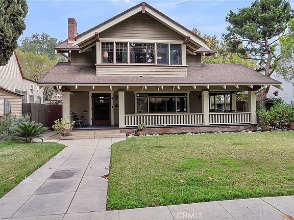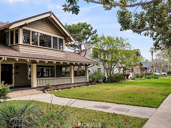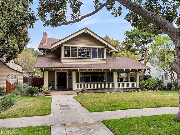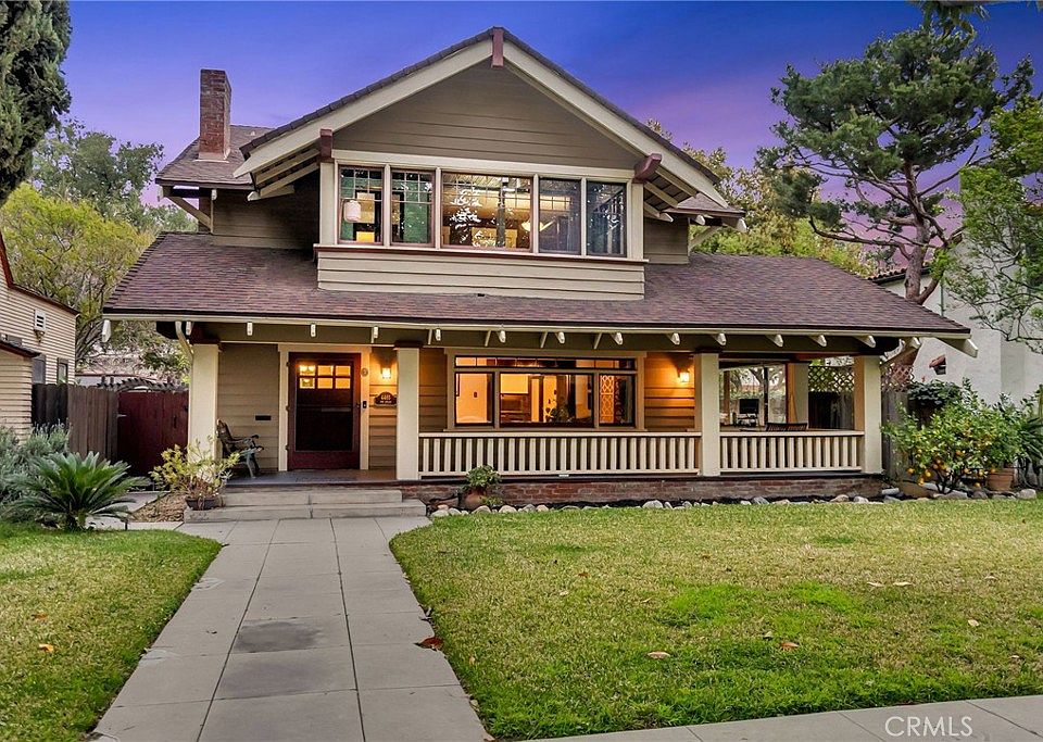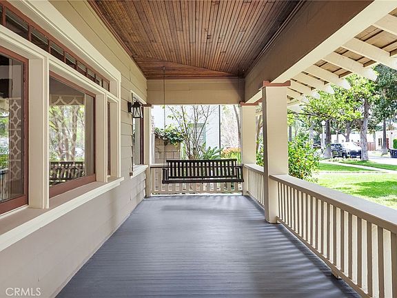 The Carl Derby Residence was built in 1910 and was designed by Riverside’s most prolific architect, George Stanley Wilson. Wilson is responsible for major additions to the Mission Inn Hotel and many of Riverside’s iconic civic structures, the RMA, Arlington Heights Fruit Exchange and the Aurea Vista Hotel, just to name a few. Early in his career he built several Craftsman homes, and this is a fantastic example of that period. This home has all the trademark features of a California Craftsman Bungalow. The clapboard siding, casement windows, wide eaves with protruding rafter tails and of course a full width, deep shade porch. Fifth Street, is lined with mature Magnolias and gorgeous turn-of-the-century homes that make your views from the porch as well as other rooms within the house so much more enjoyable. The Derby Home also has classic craftsman living spaces. A formal living room with wood burning fireplace, hardwood floors and a decorative box-beamed ceiling and a dining room lined with board and batton douglas fir, plate rails and a built-in buffet all stained in a rich dark brown. The kitchen was moved from the original location, expanded and remodeled while space was made to add a downstairs bathroom. The white shaker cabinets, quartz countertops and stainless appliances give it a modern feel while the checkered tile flooring and subway tile backsplash add that touch of vintage. There’s a small breakfast bar, great views of the back garden and it’s also well positioned in the home with great access to the rear porch, family room and dining room. On the second level there are three bedrooms a full bathroom and two spaces that would have been sleeping porches in the original design from 1910. Downstairs, there is also one more room, accessed through gorgeous french doors that was created by enclosing a portion of the wrap-around porch. One of my favorite features is the back garden. There are several patios to entertain larger groups, many mature fruit trees and of course a great pool and spa for the summer months ahead. I like that the rear patio gets fully shaded throughout the day and the mature oak tree is a constant reminder that you live in a stunning historic neighborhood. From here you are just a short walk to the heart of downtown riverside, a few minutes to the trails on Mount Rubidoux and also the lakes at Fairmount Park making this one of, if not the most walkable neighborhoods in the entire city of Riverside.