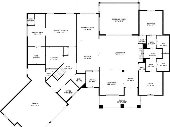 Custom-built ranchStylish shelvingEze-breeze all-seasons porchHigh-end finishesCharming front porchManicured lawnPocket office