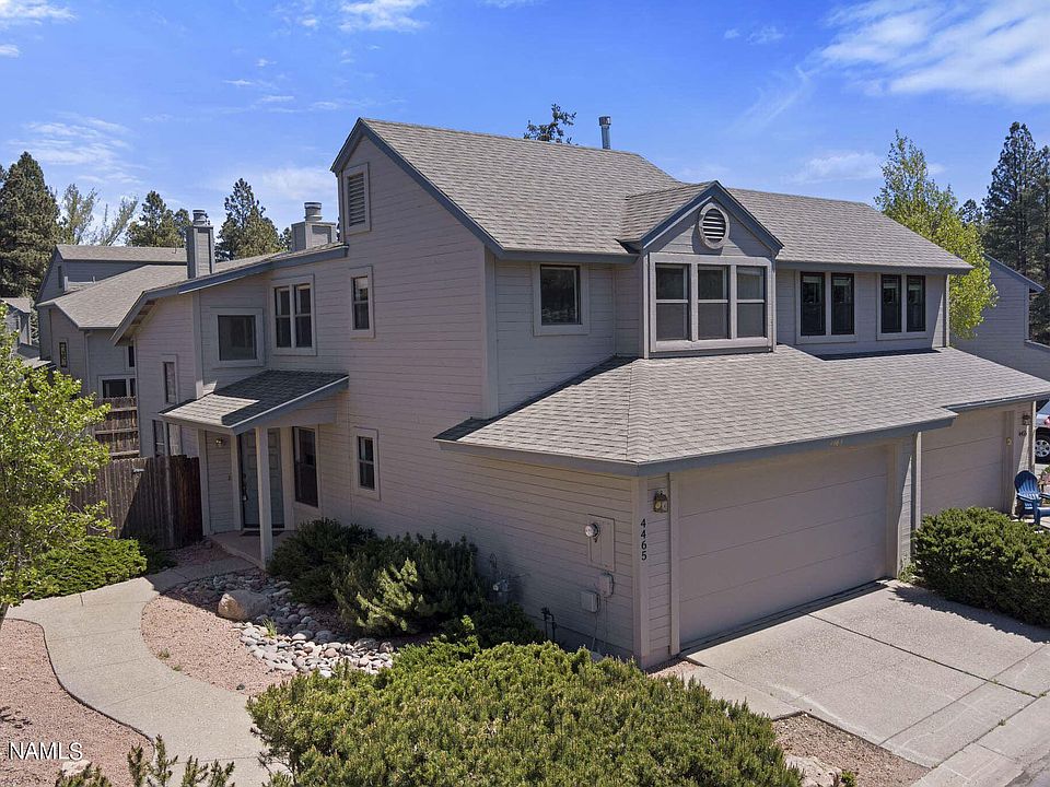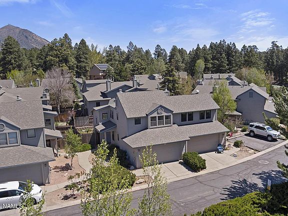 Welcome to your charming townhome nestled in the highly sought after Foxglenn neighborhood. Step into the inviting open floor plan, seamlessly connecting the kitchen, living, and dining areas, illuminated by ample natural light streaming through numerous windows. Relax in the spacious living room featuring vaulted ceilings and a cozy wood-burning fireplace—an ideal setting for gatherings or quiet evenings. Enjoy many upgrades, including the freshly painted interior and Brazilian Cherry Wood floors, enhancing the home's appeal and ambiance. Retreat to the primary bedroom upstairs, complete with an ensuite bathroom featuring dual sinks and large closet. An additional guest room offers comfort and privacy for visitors, while an open loft area provides versatile space, perfect for a home office, hobby room, or additional living area. Step outside to the beautiful backyard, an ideal spot for outdoor entertaining or relaxation, offering a blank canvas for your creativity and landscaping vision.  The attached 2-car garage provides ample space for parking and storage needs. Positioned at the heart of Flagstaff, just across from Foxglenn Park, this residence grants effortless access to outdoor activities, playgrounds, and local gatherings providing an ideal setting to fully embrace Flagstaff's vibrant lifestyle. Don't miss the opportunity to make this meticulously maintained townhome your own.Schedule a showing today and experience the comfort and convenience it has to offer!