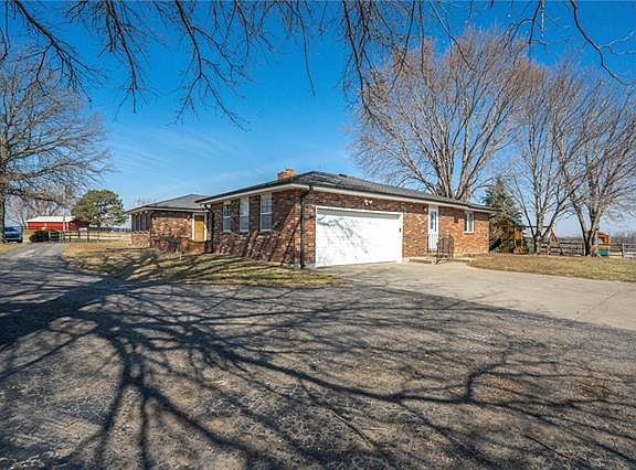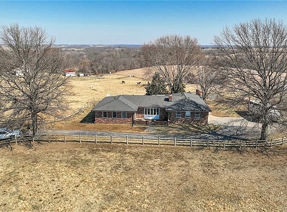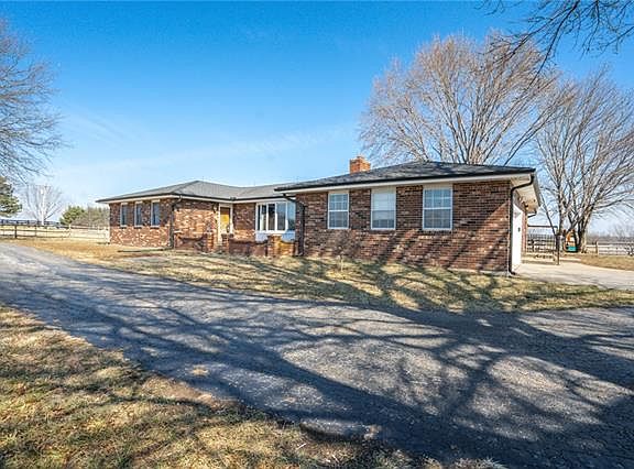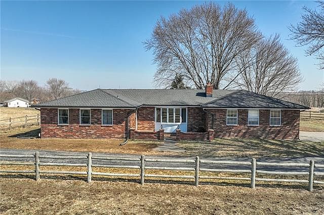 Location, Location, Location! This home is close to the Smithville lake horse trails and boat ramps. KCI airport is six miles away and you can be at the Zona Rosa shopping center in less than fifteen minutes! This property has it all, bring the whole family and all the animals! A highly desired completely brick ranch home with 4 bedrooms, 3 bathrooms, large eat in kitchen, extra large mudroom, and beautiful views from the all seasons sunroom. Two bedrooms offer private baths. Basement is a blank slate ready for your family needs, offering walkout basement, an egress window, and is stubbed for a bathroom. Not only is the home stunning the property also includes a 30x50 shop, 24X40 horse barn, including three stalls or mare/foal combo, 50x50 corral, and two heated waters.