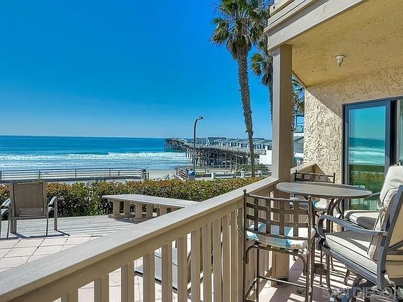 Stunning Ocean Views from the living room, dining room, master bedroom, exclusive use patio and large community sunset watching deck! Steps from the sand, Boardwalk and famous Crystal Pier! When you enter this beautifully remodeled 2 bedroom, 2 bath condo, your eyes are drawn to the quality finishes, textures and abundance of light. Newer plumbing, electrical, walls, windows, floors, paint, ceilings, lighting, fans, bathrooms and kitchen with entertaining bar, custom cabinets and stainless steel appliances. This amazing unit also includes indoor remote curtains, security surveillance system, ring doorbell, owner storage, elevators and wheelchair accessibility. Secure, gated underground parking.