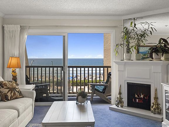 A quintessential coastal lifestyle awaits from the vantage of a third-floor residence on Pacific Beach's iconic boardwalk. Presenting awe-inspiring ocean & Crystal Pier views, this exceptional single story open floor plan features an ambiance of refined relaxation with private oceanfront patio. Anchored by the warmth of the living room fireplace, an open-plan dining area seamlessly connects to a functional kitchen, equipped with an eat-in island and white cabinetry. Affording effortless access to diverse local offerings, this surfside dwelling encapsulates a harmonious blend of comfort and sophistication, emblematic of the coveted Pacific Beach lifestyle. 1 deeded parking space conveys with 7 lottery spaces available each year upon request***