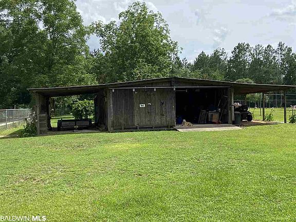 Bratt, FL. 2.88 ACRES. Brick home with vinyl accents, eaves and fascia for low maintenance. 2 years new double pane windows. New roof only 2 months old. All but 1 acre is enclosed by 5 foot chain linked fence. Newer kitchen cabinets and counters. There is a 24' x 24' workshop which includes benches and roll around tables. It is also wired for electricity. Each side is flanked by two 24'x12' lean to's. On the rear is another 24' x 12' green house. Also, there is a mother in law suite/ office /sewing space. Electricity, heat and air. However plumbing has not been run at this time.