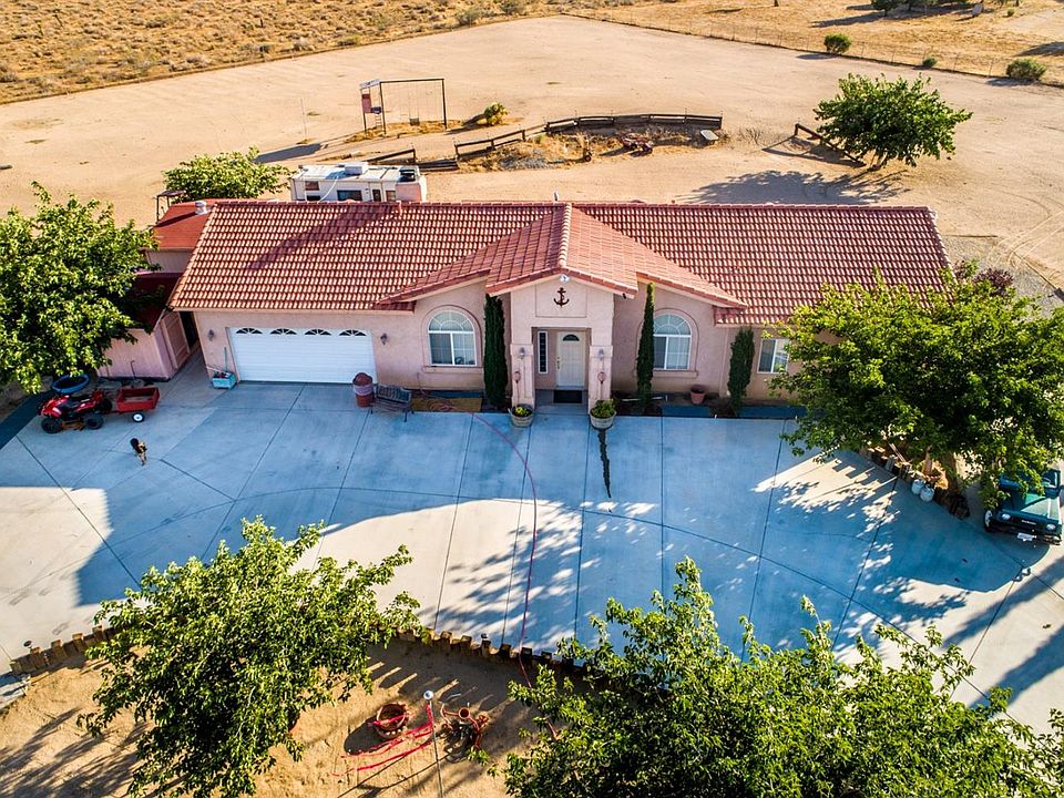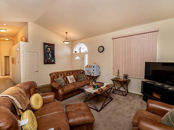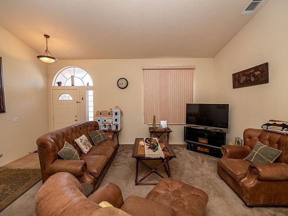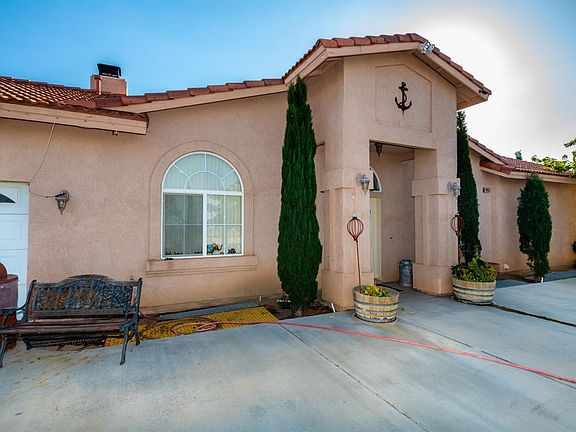 Beautiful custom built home, shows pride of ownership. This home offers high cathedral ceilings, large dining area open to the family room. The bedrooms are all good sized and there is a 3rd bathroom for guests, ducted swamp cooler and A/C. There are 2 large storage sheds, circular cement driveway, 3 drive through gates. The property is located close to paved Goss Rd and is a corner lot with a wonderful view. The property is fenced with electric wire. THE SELLER HAS PREPAID THE SOLAR LEASE SO YOU WILL HAVE FREE SOLAR OR 18 YEARS!!