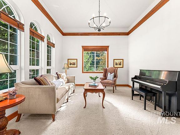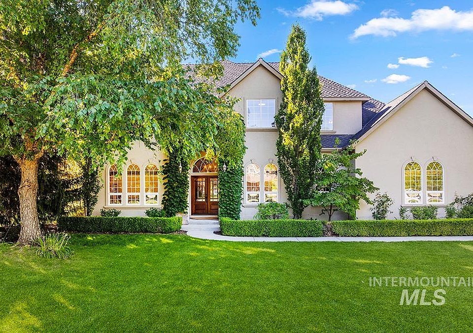 Nestled within Eagle’s beloved Callaway Ranch, this grand & gracious property offers the rare gift of quiet living on nearly two acres of lush, landscaped grounds. Known for its wide-open spaces, white-fenced pastures & serene privacy, this enclave feels worlds away yet closely knit. Here, the land is the true luxury. Mature trees, vibrant gardens & sweeping lawns invite a lifestyle of peaceful living, harvest-to-home gardening, or even the future addition of a pool, barn or artist’s studio. Harvest vegetables, gather herbs, plant an orchard, live sustainably. The classic two-story residence offers spacious interiors: formal living & dining, generous great room with stone-hearth fireplace & well-appointed kitchen with stainless appliances & walk-in pantry. Upstairs, the primary suite enjoys treetop views, ensuite bath & walk-in closet, joined by 3 additional bedrooms & 2 baths. A versatile office serves as the 5th bedroom. A timeless estate, just 10 minutes from downtown Eagle, Boise River & foothills trails.