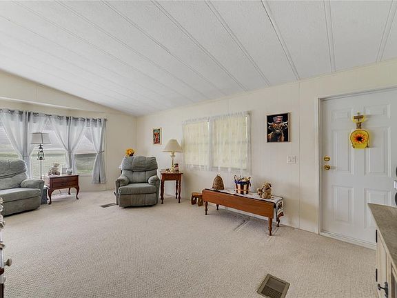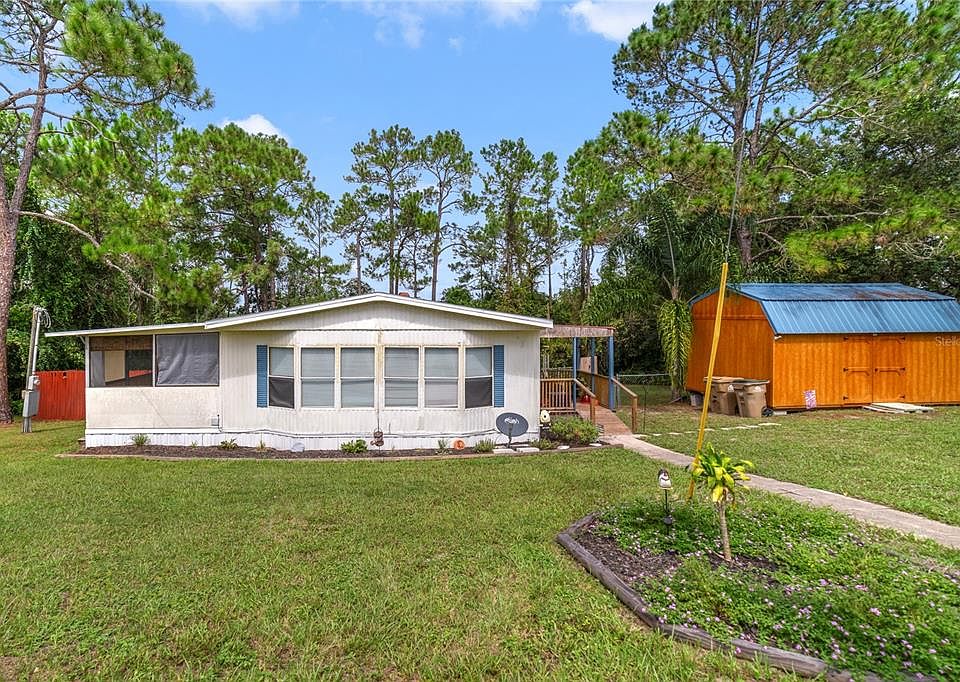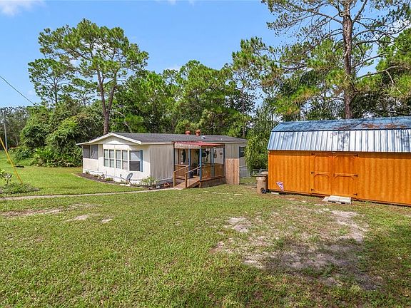 This very clean and attractive modular home is ready for its new owner. The home is an open concept 2 bedroom/2 bath home. The Great room is very spacious and has a dining area. The kitchen is nice and has a good layout and plenty of cabinets for storage. There is a very large 20x10 foot screened in and covered Florida room on the side of the home. The yard is spacious and kept up with nice scrubs and flowers. There is a paved parking area in the front of the home off the street. It does have a covered front porch. This property does have an almost new 12x20 foot barn structure that can be used for many things. Storage, a work shop, or additional living space if you add plumbing and an A/C. This home was just repiped and has a new breaker box. The roof was replaced in 2019. This home will not last long at this price. It is a great starer home for new home buyers. Easy access from SR-42 and Lake Mack Road. Just 15 minutes from Deland. Deland has hospitals, shopping, restaurants, and Stetson College just 15 minutes away. This could be your new home.