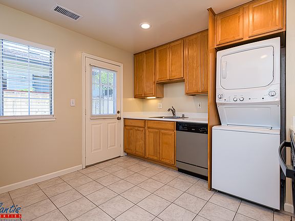 - Kitchen Features Tile Flooring, Wood Cabinetry, Granite Counters, Refrigerator, Electric Range/Oven, Dishwasher, Built-In Microwave, Stacked Washer/Dryer & Access To Private Outdoor Space