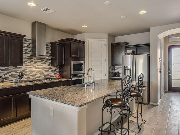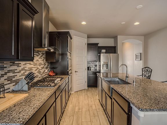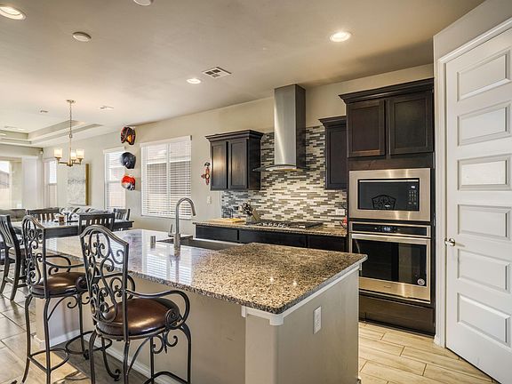 Welcome to Mountain Hawk Estates Subdivision, a newer community just minutes from Highway 550 in Rio Rancho. This prime and peaceful location offers easy access to parks, trails, shopping, and dining, all while providing stunning views of the Sandia Mountains.This beautiful 4 bedroom, 2 bathroom home, built in late 2019, boasts an open floor plan with panned ceilings that create a spacious feel. The master suite at the back of the home for privacy, includes a walk-in closet and a luxurious en-suite bathroom. The additional bedrooms share a spacious full bath.The chef inspired kitchen features sleek granite countertops and a corner pantry.