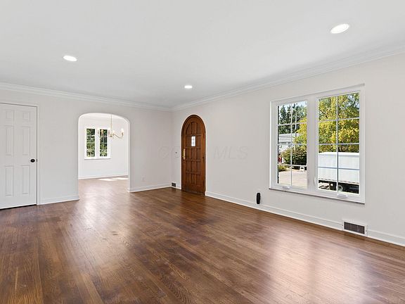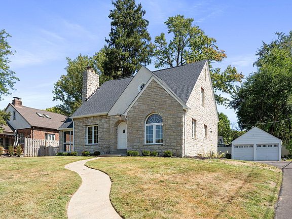 Completely renovated home featuring a stunning stone and stucco exterior! Step into the family room, featuring rich brown hardwood floors throughout and a natural stone fireplace, with a glass-paneled door leading to a screened porch. Elegant dining room, highlighted by a large arched window and brass light fixture, opens to a stunning kitchen with open shelving, quartz countertops, a custom hood, a stylish backsplash with shelf-like design, and a vertical accent panel extending to the ceiling. On the first floor, you'll find the primary bedroom and a remodeled full bathroom with vertical green tile and a convenient pocket door. Upstairs, two spacious bedrooms share a completely renovated hallway bathroom with checkered flooring. Second-floor laundry area offers a stackable LG washer and dryer, open shelving, a hanging rod, and hidden storage. Outside, enjoy a private backyard, screened porch, patio, detached two-car garage, and brand-new asphalt driveway—all in a highly desirable location!