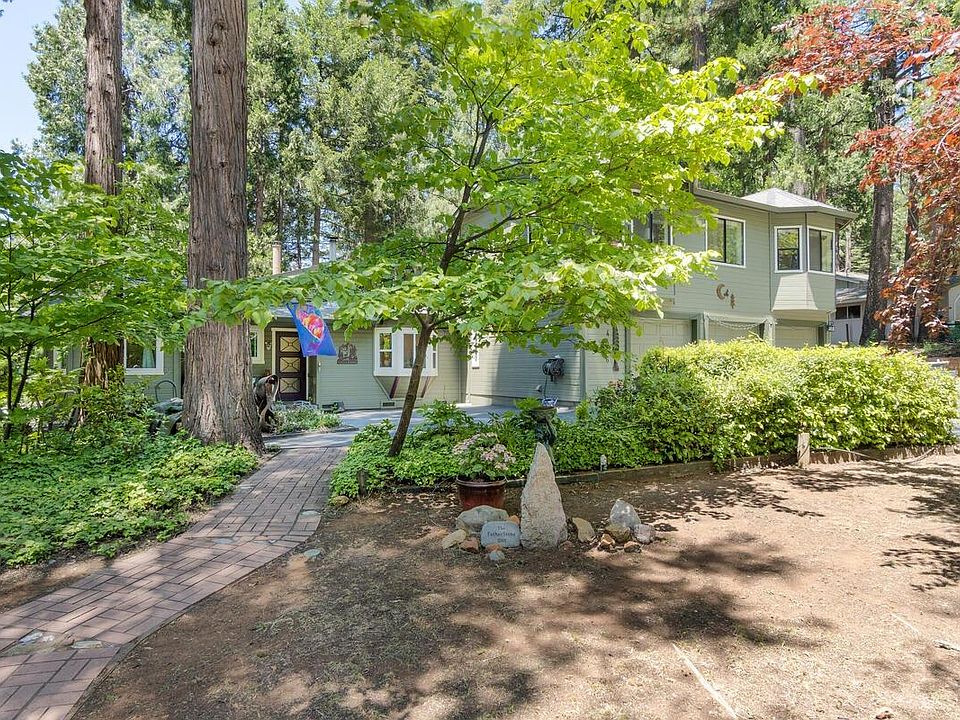 Escape to a captivating artsy mountain home near Jenkinson Lake. This 2,477 sq ft sanctuary seamlessly blends artistic inspiration with the beauty of its natural surroundings. Step inside to discover this home that merges modern aesthetics w/the warmth of a mountain retreat. Expansive windows bathe the main living area in natural light, offering views of the forest. The well-appointed kitchen features stainless steel appliances, custom cabinetry, & ample counter space, creating the perfect space for culinary creations. Retreat to the 4 spacious bedrooms (+ Office) & three bathrooms, including a master suite w/deck looking out to majestic pines, ensuite bathroom & sitting area. Bay windows bring in natural light throughout the property. Outside, the private yard invites you to soak in nature & savor the mountain air. The flat corner lot provides ample space for your recreational vehicles. Attached garage plus toolshed & large shed for hobbies, office, studio or playroom. Corner parcel is fenced on two sides with lots of privacy. This mountain home is ideally located near Jenkinson Lake, offering easy access to hiking, fishing, boating, & more. With its unique design & proximity to outdoor adventures, this mountain retreat is a haven that combines artistic charm & natural splendor