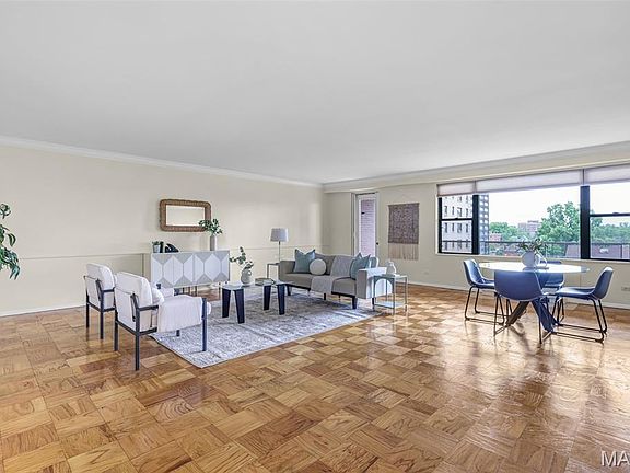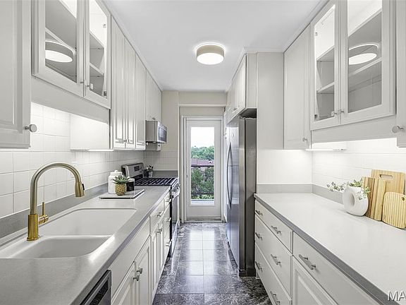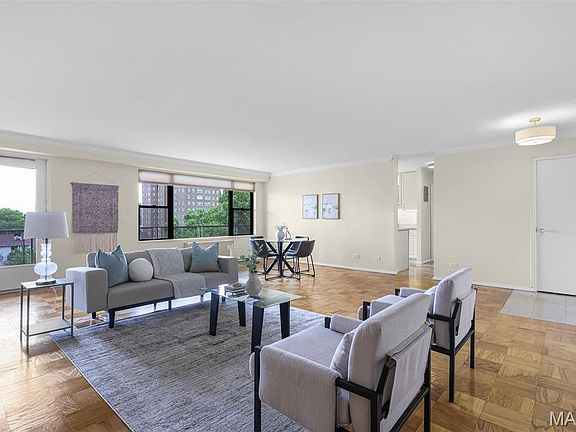 Live life large in a coveted "D" condo in the desirable Executive House. Conveniently located to the vibrant lifestyle of the Central West End yet still peaceful enough to enjoy your morning coffee on the expansive 28' x 7' covered balcony. Open floor plan with parquet flooring throughout. Updated kitchen includes custom cabinetry, solid surface countertops and stainless appliances. Large Primary Bedroom with a walk-in closet. Your monthly condo fee includes water, sewer,, trash, heating, cooling, secure entry with doorman, on-site management, pool and community areas. Your only utility bills will be electric, cable and internet. Arranged 1 car secured parking space is available for approximately $50/month. Conveniently located to the BJC campus, Forest Park, Whole Foods and public transportation.