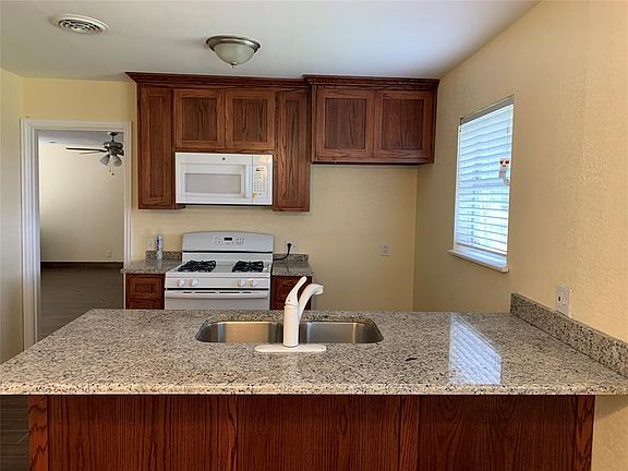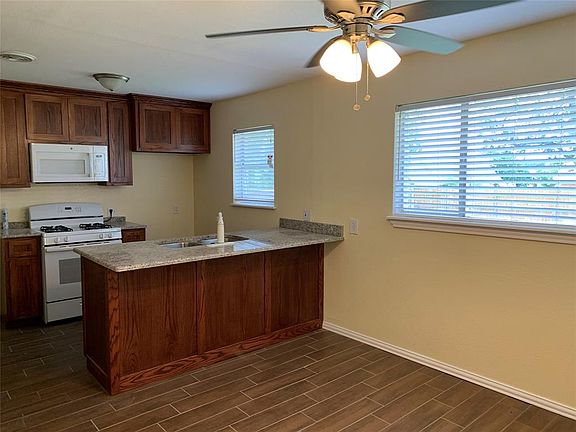 Awesome starter home waiting for a new owner. Cute curb appeal with covered front porch. Move in ready with fleshly painted all through out, tile flooring in the living areas, carpets in all the bedrooms, new bathroom fixtures, ceiling fans, new cook top, oven, microwave and dishwasher. Garage space has been converted to the living area.