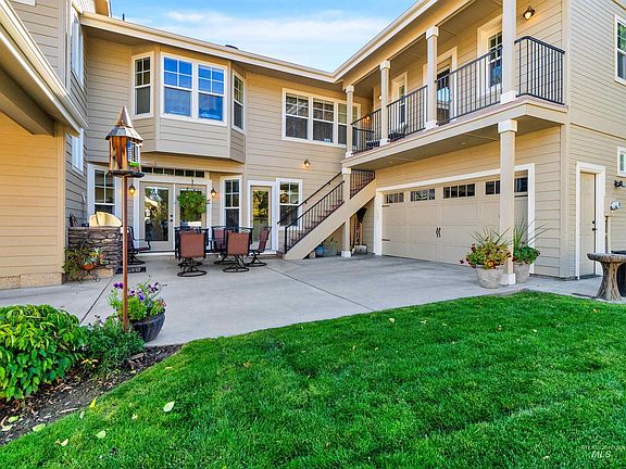 Nestled in a private, storybook-like neighborhood, this one-owner home captures the essence of an easy Boise lifestyle. Just steps from a historic, amenity-rich club with championship golf, tennis, pickleball, swimming, and social gatherings, this location offers recreation and community connection at your doorstep. Sunlight pours through expansive windows, creating a warm and uplifting ambiance throughout. A dual-sided fireplace connects the living and dining spaces, perfect for cozy mornings or effortless entertaining. The inviting kitchen features an oversized breakfast bar, generous counter space, a custom glass-paneled pantry, and access to a secluded courtyard—ideal for morning coffee, al fresco dining, or relaxing in privacy. A main-level bedroom with French doors and its own patio offers versatility for guests or a home office. Above the garage, a private ensuite with its own entrance provides exceptional flexibility for multi-generational living, long-term guests, or potential rental income. Its balcony overlooks the courtyard and built-in grill with year-round views. With landscaping maintained by the HOA, enjoy a beautifully manicured, low-maintenance lifestyle. Walking paths and close proximity to parks, dining, shopping, downtown Boise, and the freeway make this the perfect blend of comfort, luxury, and convenience.