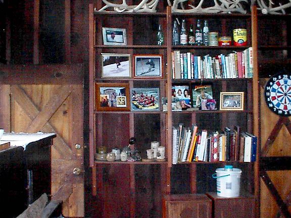 Built-in floor to ceiling shelves in the food-pantry.