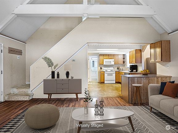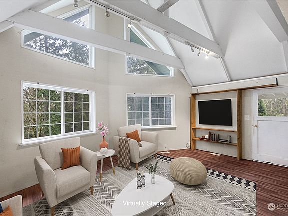 This is the gem you have been waiting for! Looking for land and privacy? Would you like to buy a property you can fix up and build some instant sweat equity? Need space for your workshop, parking for your toys and an RV pad with power? Like to garden? Two stories of windows greet you as you enter. There is a bedroom + full bath on main, bedroom + 3/4 bath w/ family room on lower level and a large bonus area/office space upstairs. Add a full wrap around deck to make it the dreamiest, Pinterest worthy, A-Frame home. Nestled near the Southworth Ferry and sitting on over 2 acres the possibilities are endless. The property features fruit tree varieties from around the world including apple, pear & plum. *Please note the home is virtually staged*