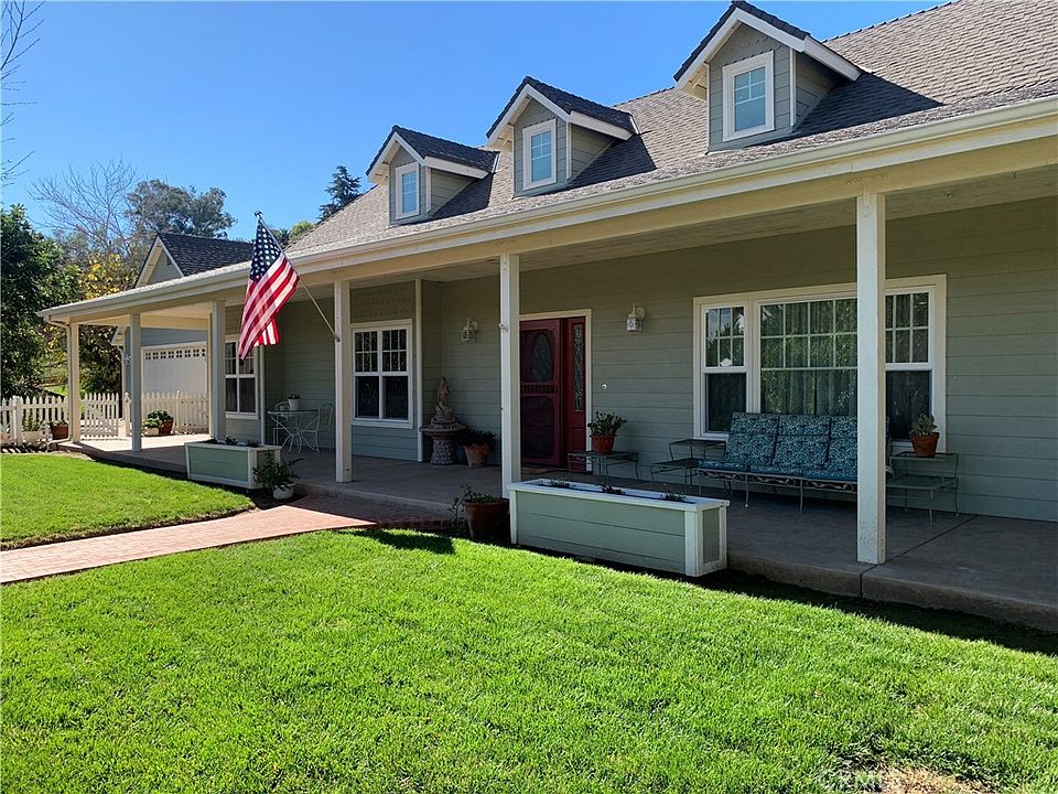 Welcome to this Custom-built “Farm-House Country Charmer”. This 2443-sqft, 4bd 3.5 bath property situated on 1.13 acres of usable land includes a Granny Flat and Horse Corral! Great family home in a quiet, peaceful cul-de-sac, yet close to shopping and Hwy 76. The interior of the home features: A “Great Room” concept with Country Kitchen and Farm House Sink; Solid Oak Hardwood Floors in kitchen, dining area, great-room and hallway; Vaulted Ceilings in dining and living room; Master Bedroom with His & Her closets; Window Seats in Bedroom 1 & 2; Separate Laundry Room with cabinets, hanging area and sink; Extra Bonus Room with its own private entrance that was used as an office. In addition to the HVAC system, there is a beautiful cream-colored wood pellet stove to warm the home, and aid in heating costs. Outside the main house features a Wraparound Veranda which adds uniqueness, an outdoor relaxing ambiance, and unlimited entertainment! Home includes solar system (leased) and Skylight Dormers adorning the roof of the house. The GRANNY FLAT features 1 bedroom and 1 full bath along with extra areas for storage/office/etc. This unit has its own new tankless water heating/AC system, private 2-car parking, and small yard – great for multi-gen living or extra income. Home has Fire Sprinklers in main house and granny flat. Property corral is fenced with white vinyl horse fencing. Bring your horse or animals, 4-H or FFA project. There is also a small red barn with tack/equipment storage and an 8x16 storage shed, fruit trees, a separate fenced area used for a large vegetable garden, RV-Parking and room for a pool. This is a MUST SEE!!!