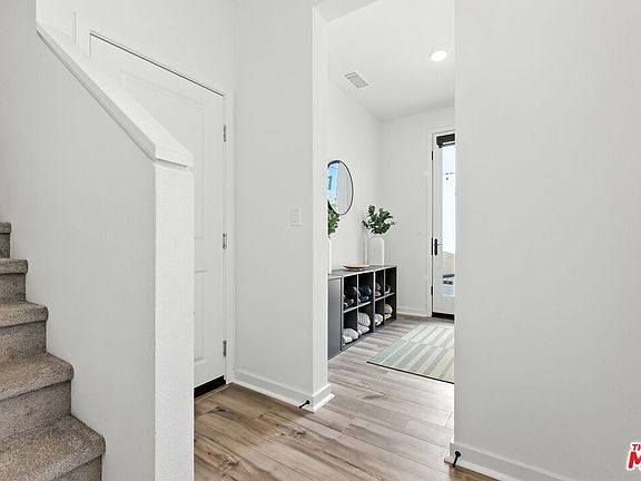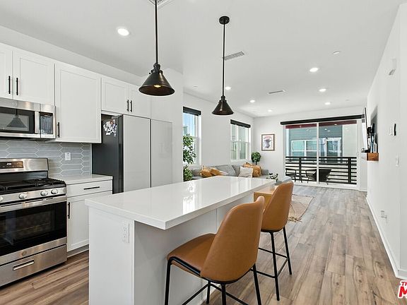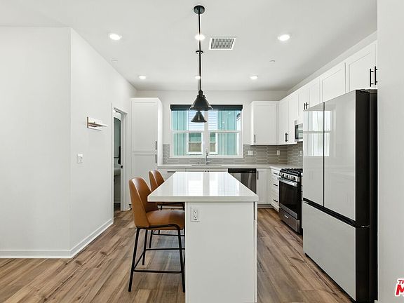 Welcome to 4468 S Bryant Paseo, a newer construction modern farmhouse retreat located in a gated Ontario community with resort-style amenities. This stunning three-story red farmhouse combines timeless curb appeal with today's conveniences, offering a striking exterior, charming second-floor balcony, and a thoughtfully designed interior filled with upgrades. Inside, the open and airy layout showcases luxury vinyl plank flooring, recessed lighting, and abundant natural light that enhances every space. The heart of the home is the beautifully appointed kitchen featuring quartz countertops, a large center island with pendant lighting, custom white cabinetry with black hardware, stainless-steel appliances, and a stylish designer backsplash, all seamlessly connected to the spacious living and dining areas. Sliding doors extend the living space outdoors to a covered balcony, perfect for morning coffee or evening entertaining. Upstairs, the bedrooms are generously sized with large windows and ample closet space, while the bathrooms feature contemporary vanities, sleek tile work, and modern finishes. The private paved patio with string lights creates an inviting outdoor lounge area, while the private garage with built-in storage and a tankless water heater offers practical convenience. Recent upgrades include a washer and dryer set, a beautiful refrigerator, Ring security equipment, custom retractable blinds, and newly installed patio pavers, and an owned solar system, all designed to save buyers time and money. Within the gates, residents enjoy access to a sparkling pool, spa, barbecues, playgrounds, and expansive green spaces, creating a true resort-style lifestyle. Combining farmhouse charm, modern upgrades, and community amenities, this turnkey home stands out as a rare find in today's market.