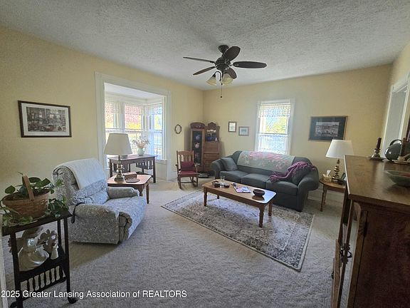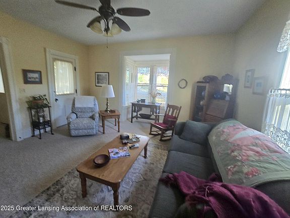 Experience the warmth and character of this updated 4-bedroom, 2-bath farmhouse situated on nearly an acre in Eaton Rapids Schools. The main level features a spacious primary bedroom, convenient first-floor laundry, and an inviting eat-in kitchen that opens to a formal dining room—perfect for gatherings. With over 2,100 sq ft of living space, there's room for everyone, including an upstairs family room and a unique dual-staircase design. The second stairway leads to a versatile attic area that could be transformed into an additional bedroom or second kitchen, offering potential for multi-family or guest living. Just a mile from downtown yet surrounded by a peaceful country atmosphere—this home truly offers the best of both worlds.