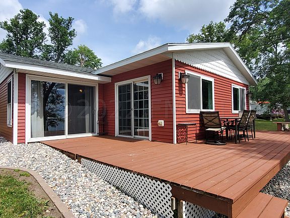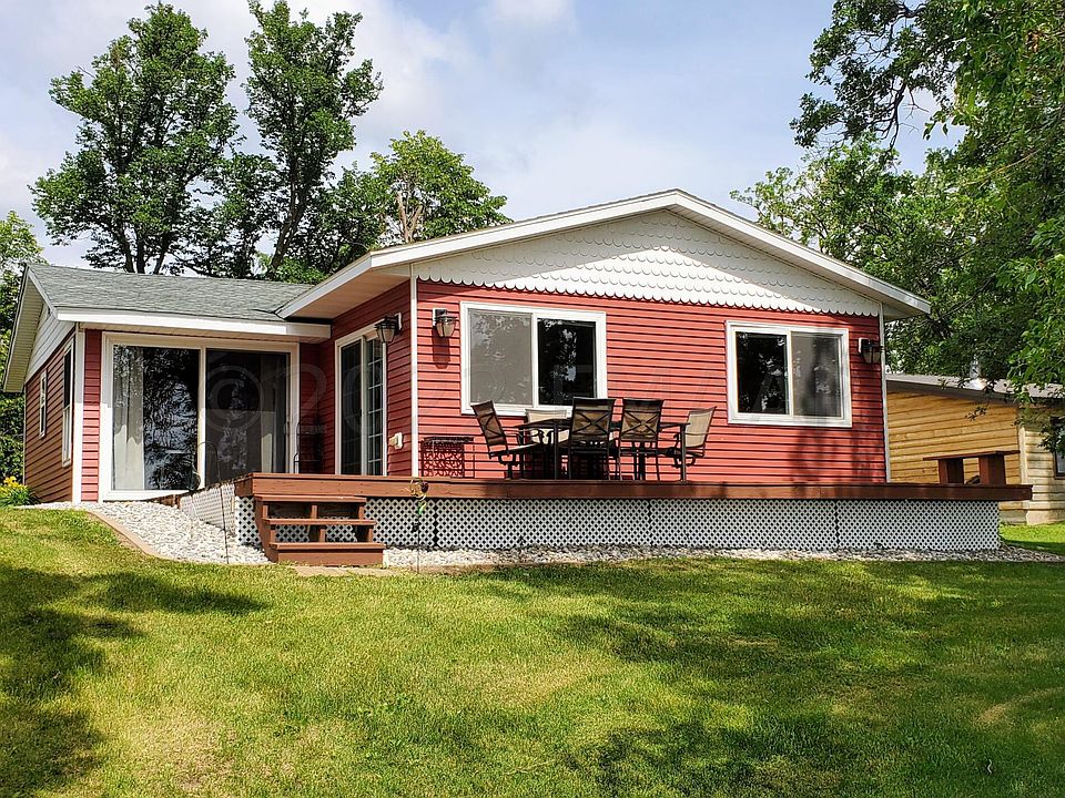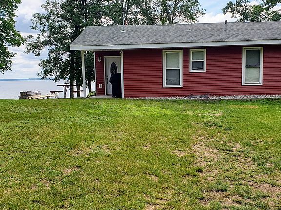 Cute red cabin with steel siding and a level sandy beach! Great Swimming area! 2 bedrooms, 1 bath, spacious family room with vaulted ceilings, tons of natural light and amazing lake views! Just steps from the water! Like new Floe aluminum dock included! This place is ready for you to pack your bags and enjoy!