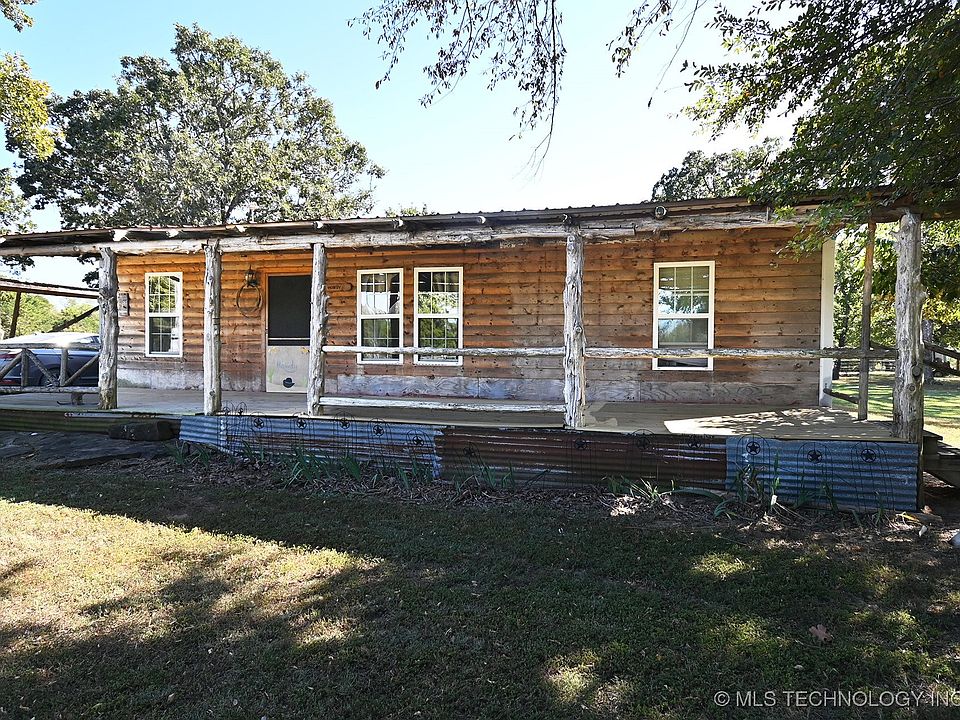 Gorgeous Rustic 20-acre farm with approximately 15 acres cleared and ready for your livestock or agricultural use! Property includes a 150' x 200' pen, livestock shed, feed room, and a building with lean-to for equipment or storage. Most of the land is workable, offering the perfect spot to add a pond. A gravel drive leads to a charming barndo-style home featuring full-length covered porches on the front and back, perfect for taking in the country views. Inside, you’ll find an open floor plan with 2 bedrooms, 2 baths, a spacious master suite with walk-in closet, and black granite countertops in the kitchen. Home is equipped with a tankless hot water system, septic tank, and storm cellar for safety. Handmade wood fencing adds rustic appeal. Currently used for horses, but ideal for any livestock operation—this property offers the best of rural living with room to grow!