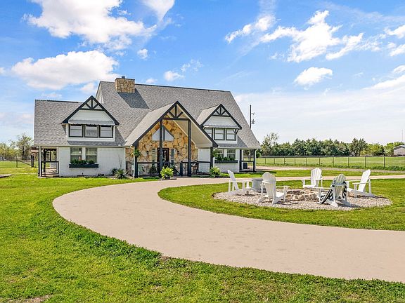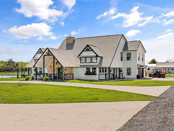 You don't want to miss this very special property. This 21.8-acre ranch boasts 5 bedrooms and 4 bathrooms with most of the house being updated since 2021. Sit in your open concept living with vaulted ceilings and look out over 2-acre tree lined lake perfect for fishing. Some of the updated features include a new kitchen, family room, primary bedroom and bath (with a steam shower), freshly painted interior, and new flooring just this year. Between the house and the barn sits a 1 bedroom 1 bath guest house with a full kitchen and laundry room. In 2021 a new custom 7 stall barn with a tack room was added so plenty of room for all your horses or livestock. There is also an additional 21x35 shed where additional stalls can be added or used for storage. The whole property is fenced and cross fenced with a remote gate entrance at the front of the driveway. No climb fencing surrounds the house in the back. You don't have to go anywhere to trail ride because there are several trails that are a part of the property. If all of this is not enough there is also a separate 1 bedroom 1 bath guest cottage with laundry room that can be used for rental income or additional living space. Live out your county dreams on this beautiful ranch. This property is eligible for an AG Exemption.