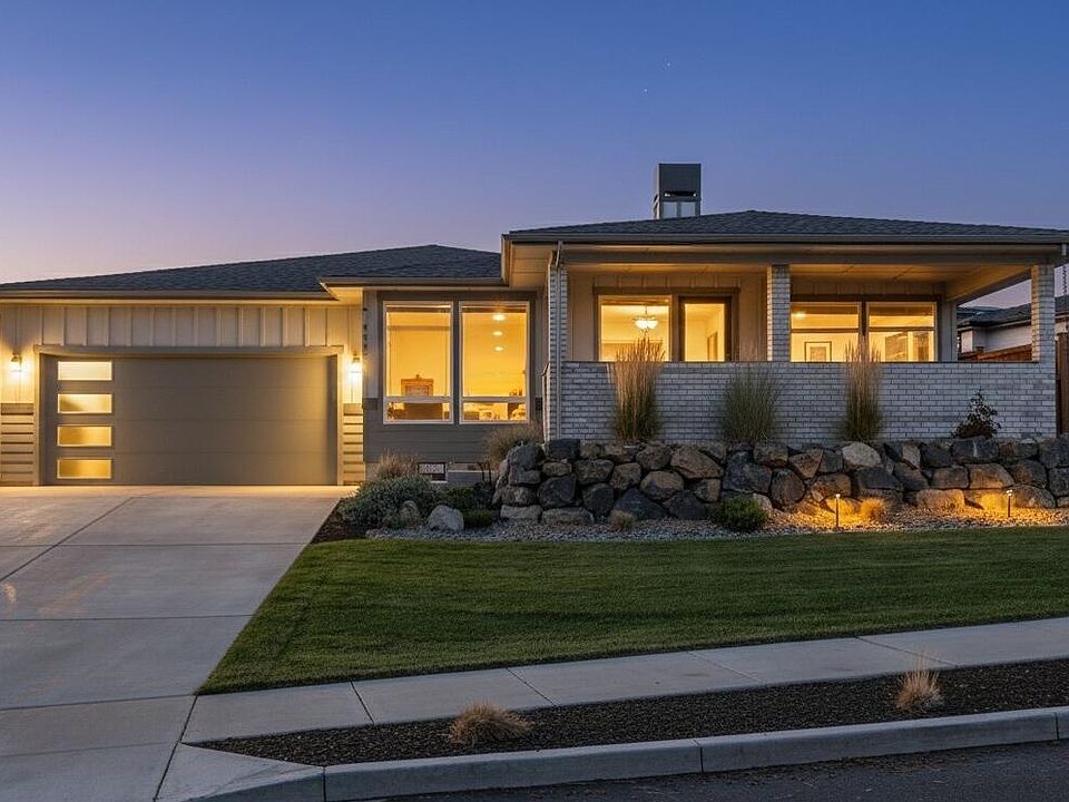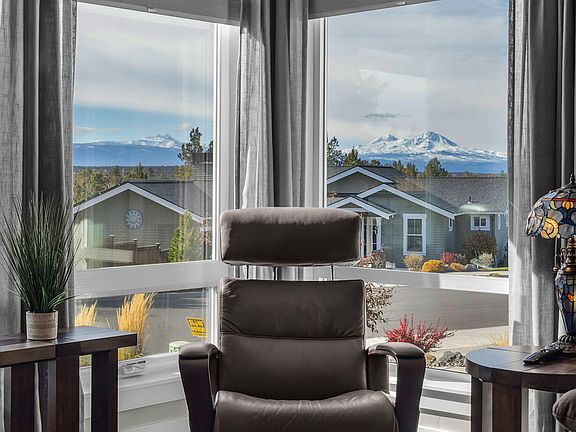 Beautiful single-level home in Redmond's premier neighborhood, offering comfort, style, and thoughtful design. Breathtaking Cascade Mountain views from the covered front deck and through expansive windows that fill the open floorplan with natural light. The spacious living area features a double-sided gas fireplace and a large dining area, ideal for entertaining or relaxing. The kitchen showcases granite countertops, large island, Bosch appliances including a built-in drawer microwave, under-cabinet lighting, and an impressive walk-in pantry. The private primary suite provides access to the back patio, a large bathroom with double sinks and tiled floors and shower, a large walk-in closet with built-in shelving, and direct access to the laundry room for convenience. Additional highlights include a tankless water heater and a 782 sq. ft. 3-car tandem garage with high ceilings for ample storage. Enjoy outdoor living on the covered front deck with its Cascade views or private back patio.