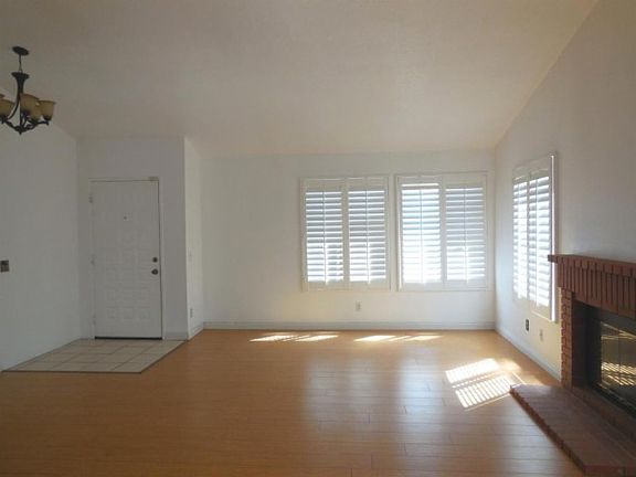 Back on market! Gorgeous one story home with Fully Paid Solar system included in price! Excellent location on corner lot. Home features entry, living room/dining area with high ceiling, wood shutters, fireplace and wood laminate floors. Family room with wet bar opens to kitchen and back yard also has vaulted ceiling. Newly painted inside, wood grain laminate floors, deluxe kitchen with new dishwasher and microwave. Master with high ceiling, elegant master bath with marble tile shower walls, marble counter on vanity, marble floor tile. Master with sliding door opening to rear patio and yard. Full size covered patio in back. Ideal for entertaining. Rear waterfall/pond in corner of back yard. Three car attached garage. Sprinklers front and back. Large lot: 9281 sq.ft. per assessor.