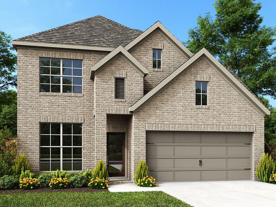 Two story entry framed with 19-foot ceilings and a home office with French doors. Two-story family room features a 19-foot ceiling and opens to the kitchen and dining area. Kitchen offers an island with built-in seating space, 5-burner gas cooktop and a spacious walk-in pantry. Primary suite with three large windows. Primary bathroom features dual vanities, garden tub, separate glass enclosed shower and a generous walk-in closet. Second floor hosts secondary bedrooms with walk-in closets, two bathrooms, a linen closet, and a large game room. A utility room and half bathroom complete this design. Covered backyard patio. Two-car garage.