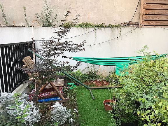Nestled on a beautiful tree-lined street with *ample parking*, this one-bedroom garden duplex (Interior: 1,113 sq ft; Exterior: 816 sq ft) with *private garden and patio* is a tranquil escape from the hectic heat of city living. Upon entering 447 Decatur, homeowners and visitors pass through an elegant lobby replete with *bike/stroller room*, transitioning them from the outside world to a serene home. The entrance of residence 1A features a large *walk-in closet* and hallway with plenty of room to leave the city behind. The main level of the apartment hosts the bedroom and an open kitchen / living room that leads to the large, *private garden. High ceilings, floor-to-ceiling windows and bleached white-oak hardwood flooring* ensure that the space is bathed in light and air. The kitchen boasts *stainless steel appliances by Bosch and Fisher & Paykel* including refrigerator, gas range and dishwasher. Elegant shaker cabinetry adorns the walls and Caesarstone counters anchor the cooking and dining area. Pendant lights hang above the kitchen peninsula and an antique penny tile backsplash completes the picture. The bedroom has a tall closet for storage and can fit a queen-sized bed with plenty of room for furniture. Oversized windows frame the patio and garden. The location of the bedroom in the back of the building ensures an extremely quiet sleep. The luxurious full bath comes with a *deep soaking tub* and *rain showerhead* as well as custom vanity with ample storage. 1A offers two outdoor spaces easily accessible from both levels of the apartment and connected to each other by an exterior staircase. Beyond the living room, there is a *650 square foot garden* perfect for lounging, hosting dinner guests, and gardening through the spring and summer. Outside of the rec room, the *sunken patio presents ultimate privacy* via an additional seating area. Downstairs, the rec room provides over 500 square feet of usable space. With *high ceilings and floor-to-ceiling windows*, the room accommodates myriad configurations: home theater, music studio, gym, office, and more. The sunken patio is invitingly visible through the windows. There is a half bath adjacent to the rec room, storage behind and beneath the staircase and a *laundry closet with washer and vented dryer*. The far end of the room leads to the building's private storage rooms. Residence 1 includes a *deeded storage closet* and there are additional units available for purchase. There is *recessed lighting* throughout the apartment and *central A/C* to keep things cool in summer and warm in winter without the noise and eyesore of window units and baseboard heaters. Compressors are mounted to the roof ensuring quiet operation day and night. 447 Decatur is a self-managed boutique condo building with robust reserves. Secured with *keyless entry* and *video intercom*, the top of the building hosts a *spacious common roof deck* with sink for entertaining and provides sweeping views of the surrounding neighborhood. Local favorites include Saraghina restaurant and bakery, Milk and Pull coffee, Greedi Vegan, Chez Oskar bistro, Mama Fox, and Grandchamps. The beautiful tree-lined Saratoga Park is a few blocks away. Transportation into and out of Manhattan is a breeze thanks to the A/C train at Utica and the J train at Halsey.