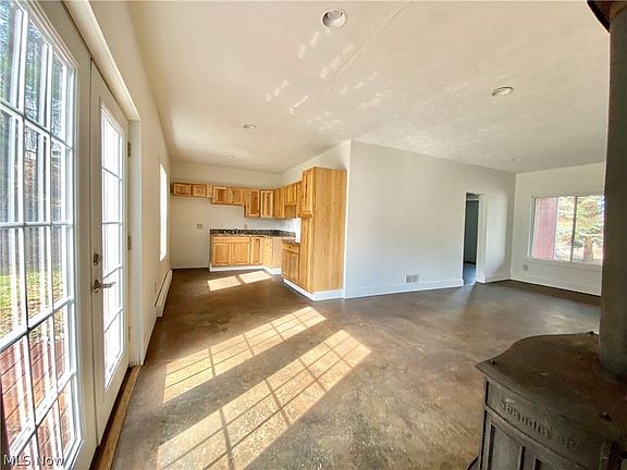 Enjoy the surrounding natural landscape from this spacious home, situated on just over an acre in Conneaut. It sits on a corner lot with mature trees, a stream and an elevated section of wooded land. It has the best of both worlds, a country setting with quick access to town. The home offers one-floor living with a large owners bedroom, walk-in closet and 4-piece bathroom + 3 other bedrooms and a full bathroom on the main level. The living space is open with 9-foot ceilings, lots of light, a wood-burning stove and french doors leading out to the backyard. A spiral staircase leads to a second story bonus space that would make a great hobby room or bunk room for extra guests. There is an extra large garage, measuring approximately 40' x 19', for all of your storage needs (up to 4 cars). This area offers so many opportunities to enjoy the outdoors with trails, covered bridges and world-class fishing. Schedule your private showing today!