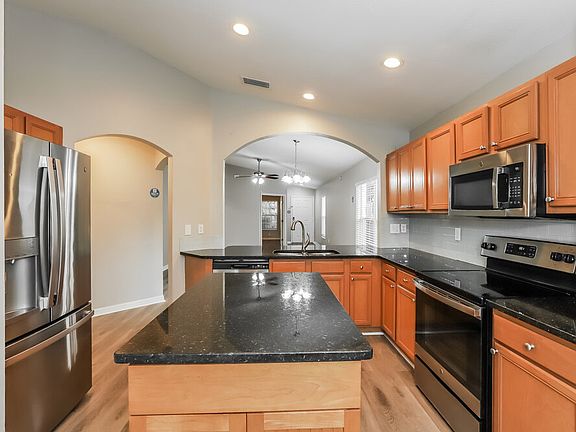 - Exterior features: 1 Story, Bonus Room, Kitchen Island, Large Backyard, Open Floor Plan, Smart Home, Stainless Steel Appliances, Walk-In Shower