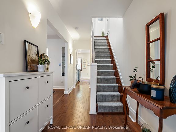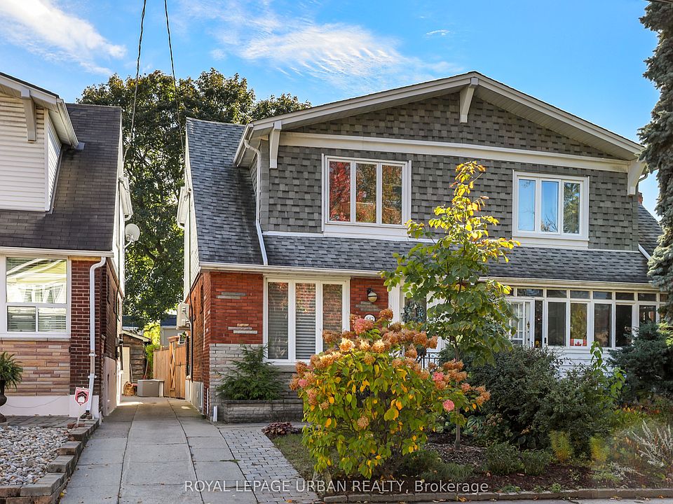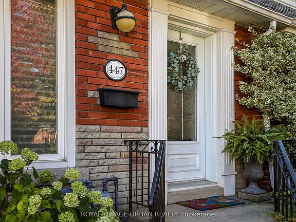 Welcome Home! 447 Milverton is the perfect combination of modern updates & original character. This wide 3 Bedroom 2 Bath home is full of natural light & exudes warmth & character. The entrance foyer features custom California closet storage & bench designed for maximum convenience. The semi-open main floor has gleaming hardwood throughout & a new (2020) designer kitchen with pantry & breakfast bar. Take in the stained glass windows in the large living & dining room, plus there's a bonus office space perfect for work from home. The second floor features hardwood throughout & a large primary bedroom with beautiful exposed brick wall & 2 closets. The generous 2nd Bedroom is almost as large as the primary! Rounding out your upper level sanctuary is a bright third bedroom, a large 5 piece bath & light drenched hallway with vaulted ceiling & skylight . Rear stairway has sliding door to back yard & entrance to comfortable finished basement perfect for when guests & relatives visit. The ample basement has tile floors throughout & features a media room, 2nd office/play space, laundry closet, 3pc bath plus ample storage room & utility room. The large back yard oasis is perfect for relaxing or entertaining. Kick back on the sun drenched oversized deck or enjoy the shade on the back patio. The private backyard also boasts an established perennial garden & shed for all your storage needs. Wide mutual drive, clever bin storage & gate add to your convenience. Located in a fantastic neighbourhood, a short walk to restaurants, shopping, Transit (Coxwell Station), hospital, great schools parks & more!