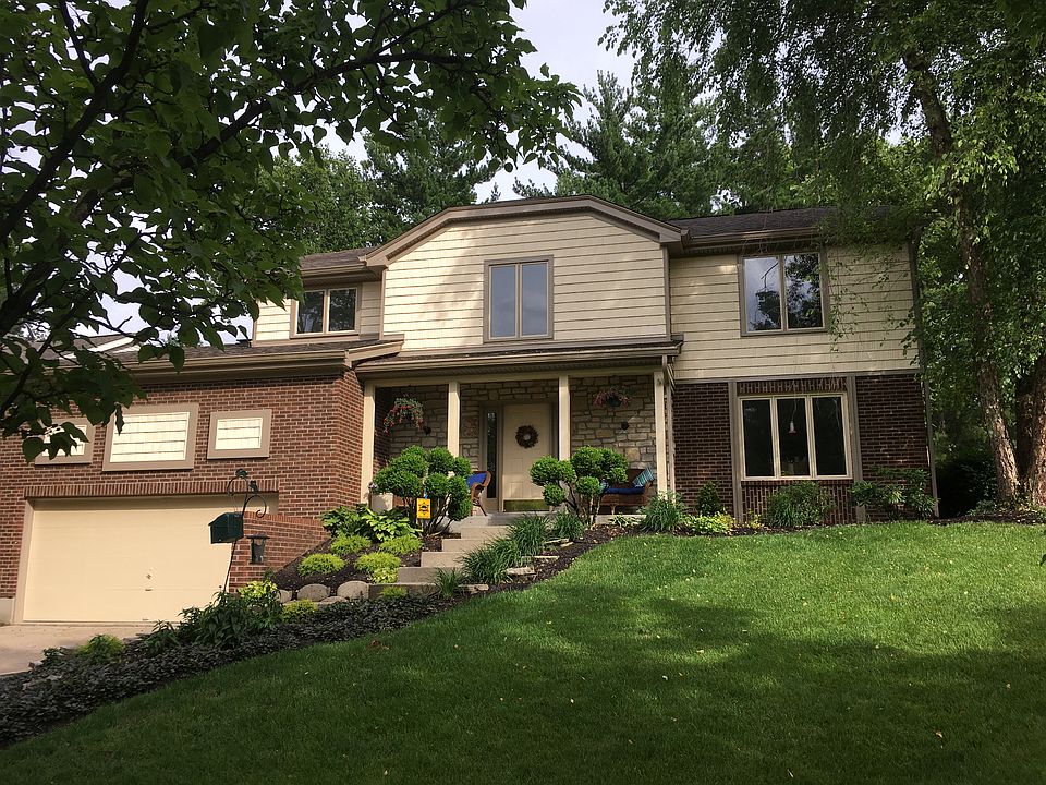 Attractive & freshly painted, four bedroom nestled on a wooded lot with privacy fencing. The secluded rear yard offers a deck, patio, hot tub & firepit. The Inviting stone front porch greets you as you enter this well loved home. Gleaming hardwood floors are a recent addition to the spacious 1st floor. Sunken family room includes built in bookcases 10 ft ceiling & masonry fireplace. New carpet accents the 2nd floor. Finished rec room & play areas in the LL. Newer roof, siding, gutter guards & french doors. Two year A/C. Quality built with full brick wrap. Generous storage! Convenient location!
