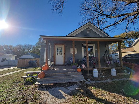 3 BR, 2 BA, Fenced yard, Detached garage (14 x 24) with 10' door. Has concrete floor and electricity. Additional garden shed around back. 3 stalls off street parking in front. Cute covered front porch, Entry with closet and drop zone, hardwood floors, Spacious LR, Open kitchen/dining with laminate and butcher block countertops. Dishwasher & Range included. Walk-in Pantry is great storage! 3 BRs including ensuite with attached bathroom & main floor Laundry. 2nd bathroom with walk-in shower. Some lathe/plaster and some drywall throughout. Updates: Gas furnace/central air, Roof, soffits, windows, and water softener (included). Nice back entry area that walks out to a wooden deck overlooking the fenced yard. Taxes $867/year. Call today to inquire.