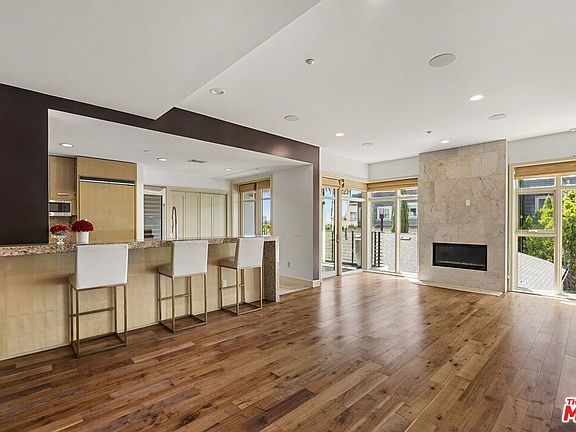 Located in the prestigious La Terrasse in prime Beverly Hills, this rare 2-bedroom, 3-bath residence offers spacious living, designer finishes, and seamless indoor-outdoor flow. The unit features two true primary suites, each with walk-in closets and luxe en-suite baths, plus expansive balconies with views of the Pacific Design Center and West Hollywood. Natural finishes, floor-to-ceiling windows, and a limestone fireplace create a calm, contemporary vibe, while custom cabinetry and high-end materials add warmth. The open-concept living, dining, and kitchen areas connect to a large private balcony perfect for entertaining. La Terrasse provides full-service amenities including concierge, fitness center, screening room, and gated parking for three. With a Walk Score of 88, you're steps from top dining, shopping, and nightlife.