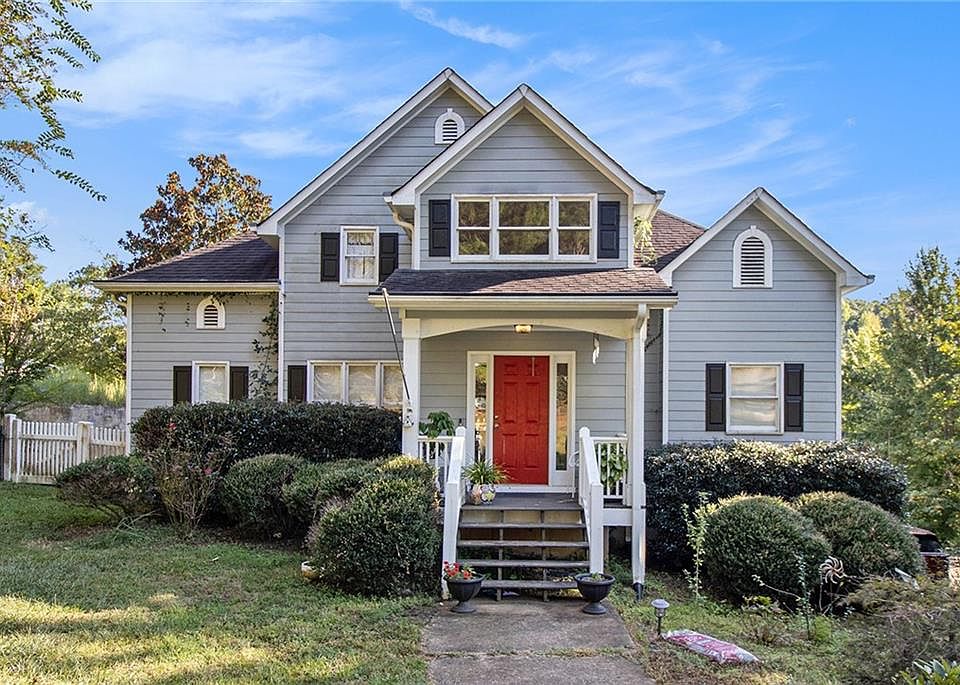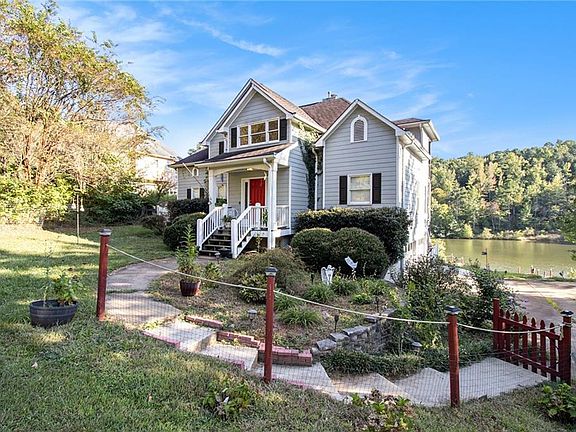 This beautiful home, located in the Paces Lakes Estates subdivision, has the most fantastic lake access and view from the backyard. Very private with many features to make outdoor living the best. 3 bedrooms and 2.5 bathrooms. The basement is ready for drywall and has potential to become a finished walkout basement. Primary on the main, laundry room on the main and plenty of decks to relax and enjoy nature. The bedrooms upstairs have a loft where guests can kick back and relax. The kitchen has new stainless refrigerator, and real hardwood floors on the main level. Home has a family room with fireplace and an adjacent eating area to sit and dine. Won't miss a chance to fish with this one. Bass and Blue are in the photo here. Comes with boat dock, and lake is maybe 75 feet from outdoor patio. I'm excited to share a fantastic new opportunity in Dallas, GA. Conveniently located near schools, shopping, and commuting routes while maintaining a peaceful lakeside setting.