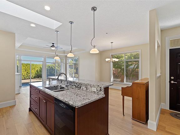 New oak hardwood floorsBright open layoutDesigner kitchenSolid maple cabinetsGranite countersSpacious backyard oasis