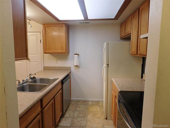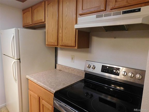 Come put your stamp on this condo in a prime location. Ideal for a first-time home buyer with vision, or DIYer. This 2 bed, 1 ¼ bath home has an open floor plan. The kitchen overlooks the dining and living room ideal for meals and entertaining. The spacious living room has a beautiful wood burning fireplace with gorgeous rock surround for those cold Colorado nights. The kitchen has plenty of cabinets and comes complete with a newer stove, refrigerator, dishwasher and disposal. Both Bedrooms are good sized with walk in closets. The Primary Bedroom has an adjacent ¼ bath with sink, mirror, counterspace and additional storage. However, storage isn’t an issue with a hallway linen closet, coat closet and storage closet! Conveniently located in the unit is a stackable washer and dryer next to the full bathroom. Just off the living room is a covered patio which opens to landscaped grounds and across from the pool. Low HOA fees include water, grounds maintenance, trash and tennis courts. Most of all you’ll love the location with easy access to shopping, dining, DIA, Buckley AFB, Light Rail, Town Center of Aurora, walking trails, Aurora Community College etc. Priced to sell, don’t miss out on this opportunity. NOTE: Buyer will want to replace carpet, price has been reduced to compensate for that.