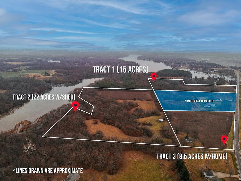 Tract#2: 22 acres with a combination of tillable, pasture, and woods. This lot offer scenic view of the lake and is the ideal lot to build your next dream home.