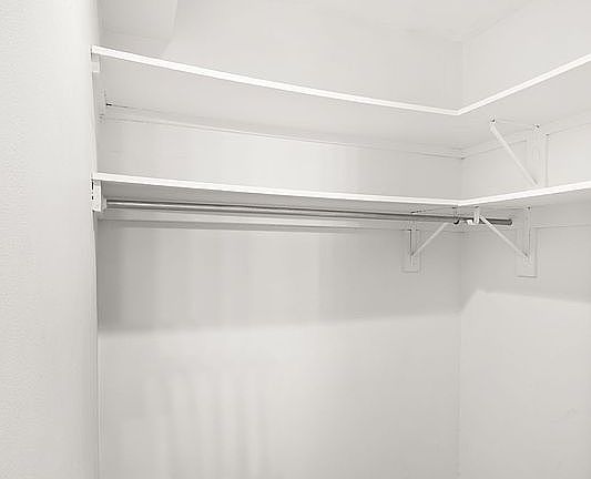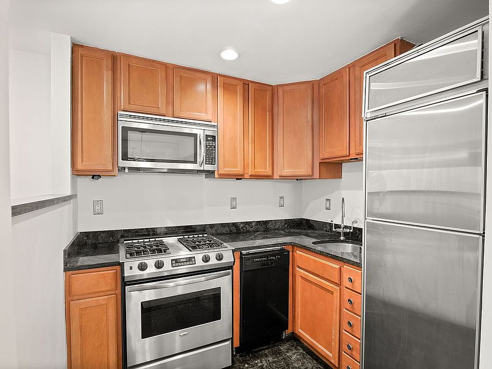 The apartment’s versatile floorpan has room for a workspace, dining area, and sleeping area. The kitchen features generous cabinet space, a dishwasher, microwave, and stainless steel appliances. Windows face south, so the apartment gets natural sunlight throughout the day. There is a massive walk-in closet with shelving that provides ample storage. The HVAC unit efficiently heats and cools the apartment.