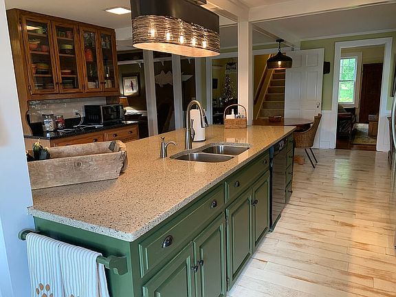 The house, original to 1870, was restored and rebuilt in the late 70’s, sparing no detail. A large kitchen, dining room, living room with fireplace, family room, sunroom, laundry and pantry, as well as one bedroom and a full bath complete the first floor. The upper level is a charming one bedroom and bath en-suite complete with a fireplace.