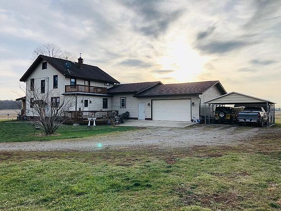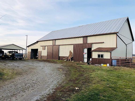 2,732 square foot 2 story on 4 acres! Very rural area! Corn fields in every direction. 4 bedrooms. 2 full bathrooms. First floor master suite is a mother in law suite w full bathroom, huge living room & plenty of closets. The other 3 bedrooms are upstairs. Each has a ceiling fan. Full bathroom upstairs w pedestal sink. First floor laundry. Family room w wood burning fireplace. Dining room has pocket doors. Original built in cabinets. Original hardwood floors. Great front porch. Deck. Concrete basketball court. 2 car attached garage. Additional buildings include a 36x70 Barn w water & electric, 18x36 Lean to, 6x10 Lean to & Shed. The sellers have a mule, 2 donkeys & a baby donkey. Please do not disturb or pet them. The property is being sold as is. Open House Sunday 1.24.2021 1-3pm.