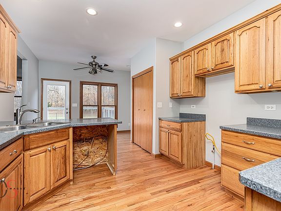 Stunning one owner 3 bedroom, 3 bathroom ranch home. You'll love the split floor design with the master suite on one side of the home and additional two bedrooms and bath on the other side. Family room offers a 12' vaulted ceiling. Andersen windows. Gleaming hardwood flooring. Convenient main floor laundry with an additional laundry hook up in basement. Huge master suite includes a tray ceiling, sitting area, full bathroom with separate shower, whirlpool, double bowl vanity, and walk-in closet. Eat-in kitchen includes a breakfast bar and dining area with a glass door leading to a deck overlooking the beautiful back yard and pool. The pool is semi-underground. Enjoy country living watching the wildlife on your 1 acre lot. Large 3 car attached 36'x24' garage with hot/cold water available. Recent updates includes newer roof and freshly painted interior. Full basement with bathroom offers endless possibilities for future finishing. Great curb appeal.