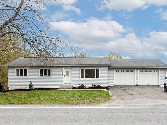 BUY THIS HOUSE NOW!!!Welcome to 4470 Ridge Rd., a beautifully updated Ranch Style home nestled in the heart of Williamson, NY. Offering approximately 1,800+ sqft of finished living space. (1134 sqft on first floor and the rest in the lower level approx by seller) this home seamlessly blends style, comfort, and versatility. At the heart of the property is the expansive walk-out lower level, which adds roughly approx. 750sqft (by seller)of newly finished space. Thoughtfully designed, this area includes a modern full bathroom with convenient laundry room, and a charming barn door accent. With its own two-car garage and direct access to the rear yard, this level is perfect for guests, a home office, or recreational space. It also offers an ideal setup for snowmobile enthusiasts, providing easy access to nearby trails directly from your garage. Upstairs, the main floor features 1,134 sqft of stylish living. The entryway welcomes you with brand-new luxury vinyl plank flooring that leads into warm, gleaming hardwoods. The living area includes classic built-in bookshelves, adding both function and charm. Just off the updated kitchen, the dining area opens through double doors to a durable Trex deck—perfect for entertaining or relaxing outdoors amid the home’s beautifully landscaped and treed lot. The kitchen has been tastefully refreshed with a double stainless steel sink, a spacious pantry, and newer windows that fill the space with natural light. The main bathroom has been fully remodeled, featuring high-end fixtures and a shiplap accent wall that lends a touch of farmhouse elegance. Throughout the home inside and out, you’ll find fresh paint, new siding, and updated windows, bringing a fresh, modern look to every corner. The main level also includes a two-car garage with a brand-new door, while the front entrance is accented by a stamped concrete sidewalk and stoop. Central air ensures year-round comfort, completing the package. With its generous layout, extensive updates, and flexible spaces, 4470 Ridge Rd. is a move-in-ready gem offering the perfect balance of modern convenience and countryside charm. Delayed Showing May 1, 2025- negotiations start May 6th at 3 pm
